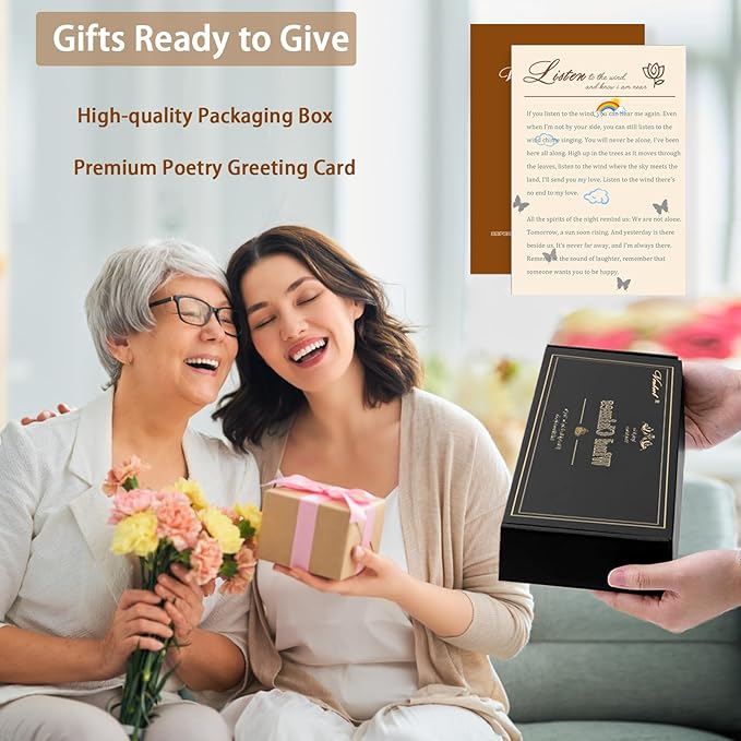 - IDEAL GIFT & READY TO GIVE -- The butterfly gifts come in beautiful boxes and come with an exquisite card, making them a great gift choice. The delicate and elegant butterfly wind chime is not only a great gift for mom, grandma, and mother-in-law but also suitable for most festivals and occasions, such as Mother's day, Teachers' Day, Thanksgiving, Christmas, Weddings, Birthdays, etc.