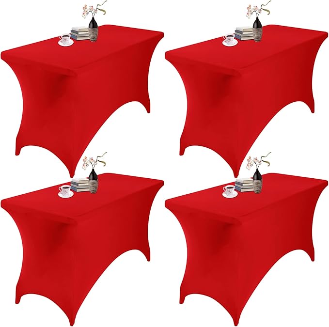 4Pack Spandex Waterproof Table Covers 4ft,Spandex 4ft Waterproof Table Cover for Party,Wedding, Banquet, and Events(Red)