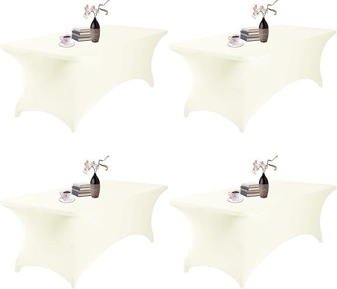 4Pack Spandex Waterproof Table Covers 8ft,Spandex 8ft Waterproof Table Cover for Party,Wedding, Banquet, and Events(Ivory)