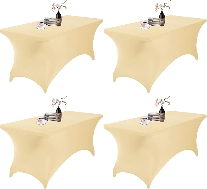 4Pack Spandex Waterproof Table Covers 6ft,Spandex 6ft Waterproof Table Cover for Party,Wedding, Banquet, and Events(Champagne)