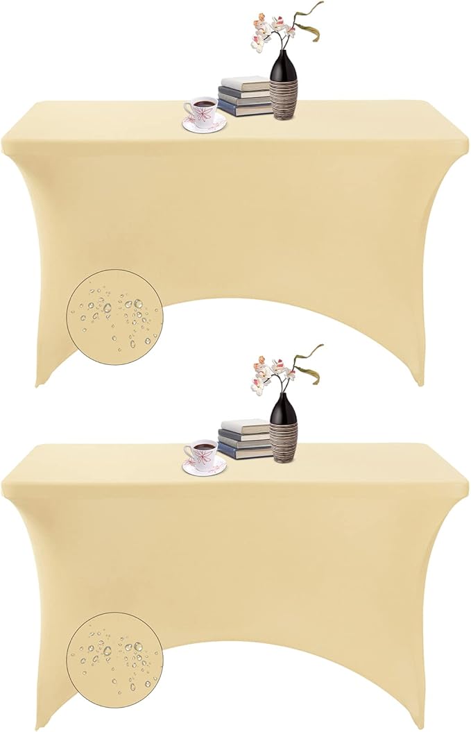2Pack Spandex Waterproof Table Covers 4ft,Spandex 4ft Waterproof Table Cover for Party,Wedding, Banquet, and Events(Champagne)