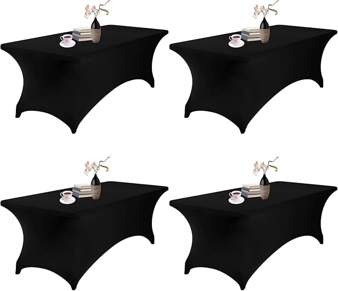 4Pack Spandex Waterproof Table Covers 8ft,Spandex 8ft Waterproof Table Cover for Party,Wedding, Banquet, and Events(Black)