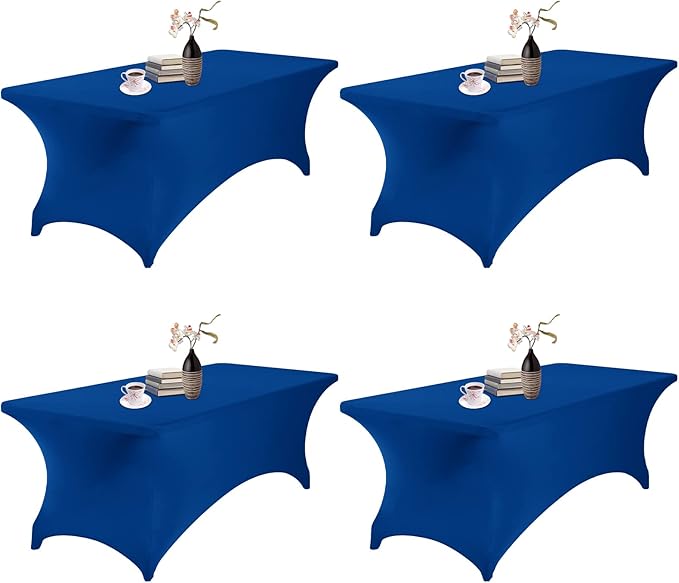 4Pack Spandex Waterproof Table Covers 8ft,Spandex 8ft Waterproof Table Cover for Party,Wedding, Banquet, and Events(Classicbule)