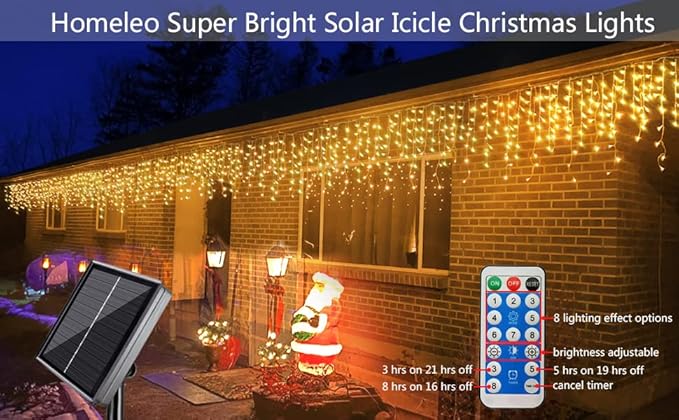 - 【8 Lighting Effects】8 Lighting modes for different occasions, solar Icicle christmas lights Comes with multi-functional features, just enjoy the beautiful holiday night!