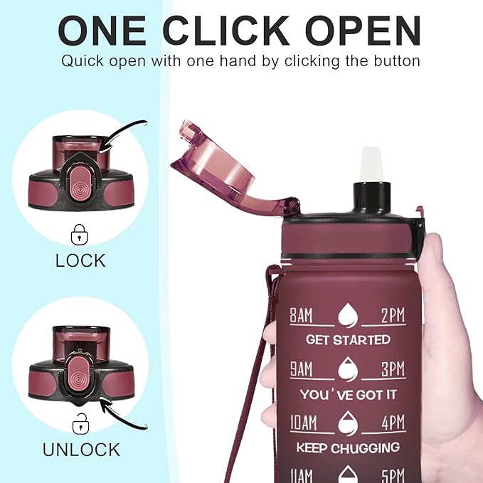 - 【Humanized Design】Water bottles with times to drink can quick open with one hand. The flip-top lid is used a secure lock, making it dust-free and leak-proof. Time water bottle is portable, light, and easy to use.