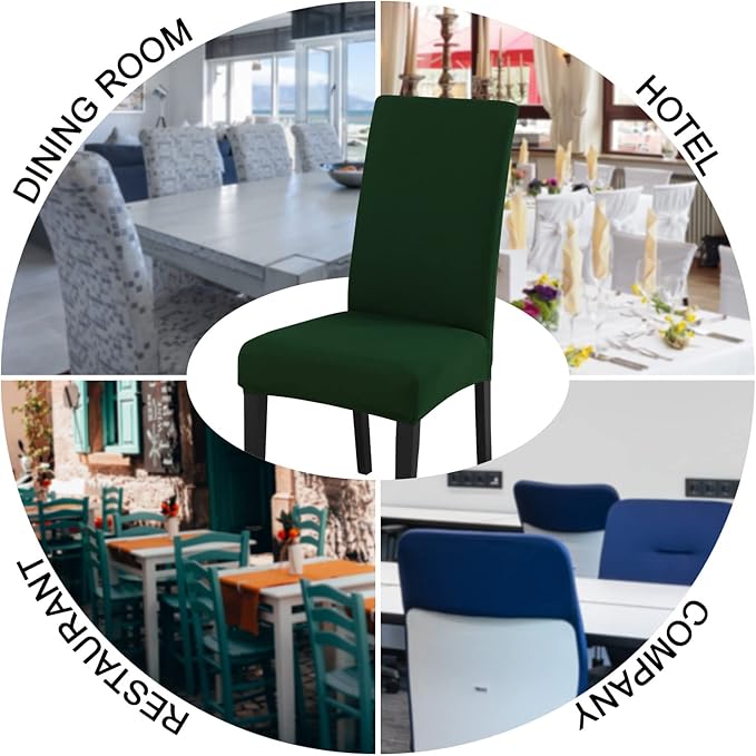 JQinHome Chair Covers for Dining Chairs, High Stretch Removable Washable Chair Protector Cover Set of 2, Chair Slipcovers for Dining Room, Kitchen,Home Party,Wedding Ceremony(Hunter Green, 2PC)