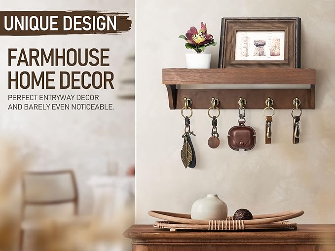 - 【Perfect Housewarming Gift】 Entryway key organizer is a essentials item for first apartment,it also flatters an entryway decor.Its a fashionable and functional way to show your love to friends or family.