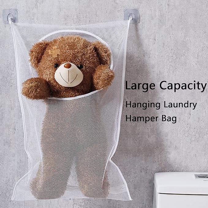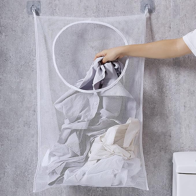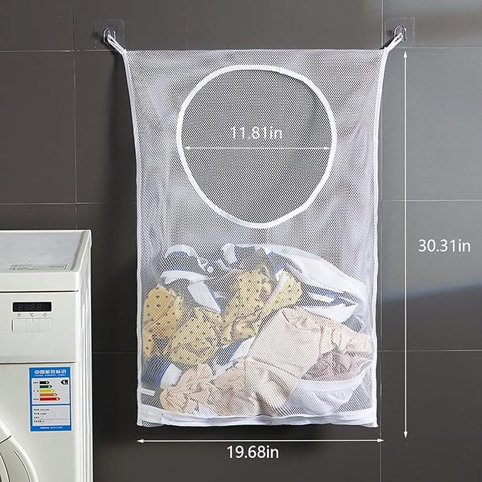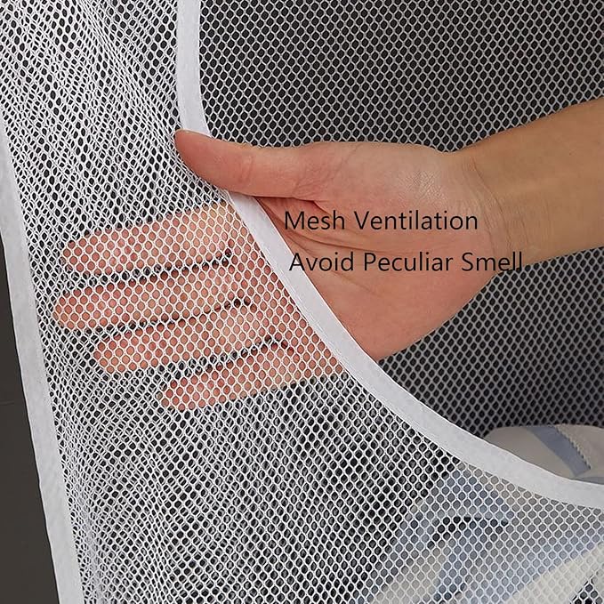 - Mesh ventilation: Mesh design makes each of your clothes or dresses can have its own blanket and space to breathe. 2 free adhesive hooks can be hung on the smooth and clean surface(like wall, tile etc) with stickers.The clothes hampers suitable for hanging in bathrooms, laundry rooms or dorms.