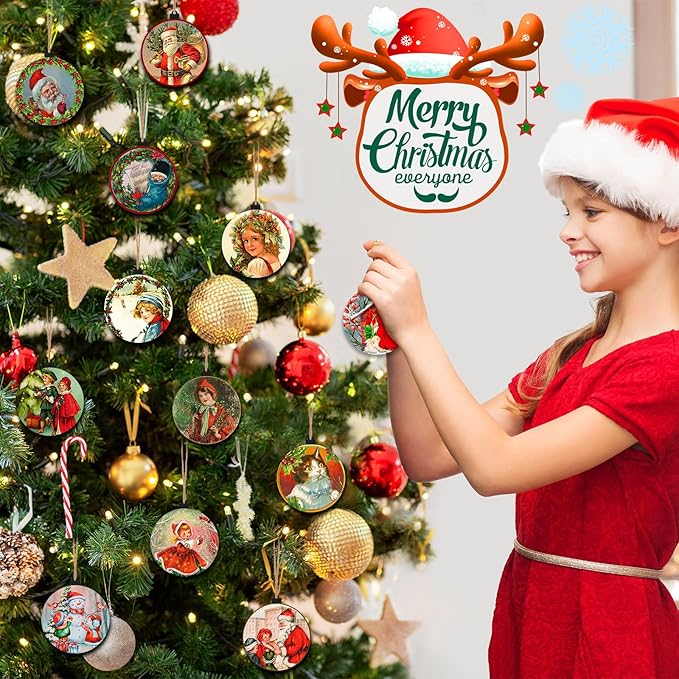 - Reliable Material and Clear Printing: these retro Christmas ornaments are made of wood material with bright color printing, sturdy in construction and smooth in surface, not easy to fade or break, lightweight and reusable, can be applied for a long time; These vintage Christmas tree decorations are approx. 3.15 inch/ 8 cm high and predrilled with holes, so you can cut the rope into a proper length and pass through the hole for easy hanging