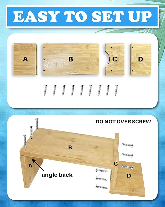 - [WHAT’S INSIDE THE PACKAGE] - This wood laundry detergent cup holder and drip tray includes 4-pieces of wooden angled laundry organizer for detergent parts and 1 piece of the elastic strap, and 9 pcs of screws