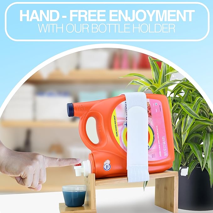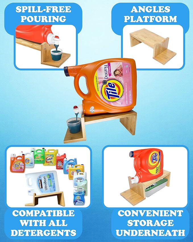 - [OUTSTANDING DESIGN] - This Skywin wood laundry detergent holder has an "Angled" Feature. No need to tilt or lift the bottle. This wooden laundry soap holder can help you to be more energy-saving at a cheap cost by using this item for both your detergent and fabric conditioner bottles as part of your daily laundry supplies