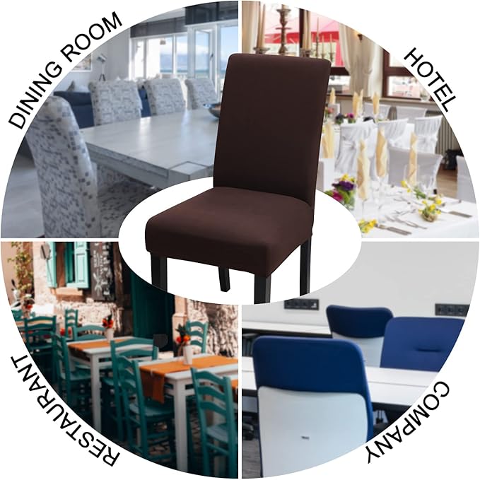 JQinHome Dining Room Chair Covers Set of 8, High Stretch Chair Slipcover Removable Washable Chair Seat Protector Cover for Home Party Hotel Wedding Ceremony (Coffee)