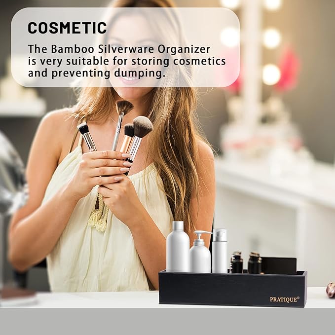 - 【PRACTICAL STORAGE SPACE】PRATIQUE drawer organizer can reduce clutter and avoid desperately searching for lost items. Ensure drawers in the kitchen and beyond are neat and organized.The flatware organizer is made of bamboo, which has a neutral light wood color and it will look beautiful as your kitchen, closet, garage and office drawer.