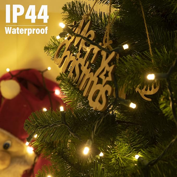 - 【Fantasy Christmas Mini Lights】These warm white Christmas decorations lights include 100 led mini-light bulbs, 28 feet of green wires. These 360º sparkling string lights can not only provide good lighting effects but also bring a more romantic festive atmosphere When the warm white LED Christmas lights glow in the dark, everything becomes tender, romantic, and dreamy. Mini Christmas String Lights are a great decoration for weddings, parties, stages, Valentine's Day, Christmas, New Year, and more