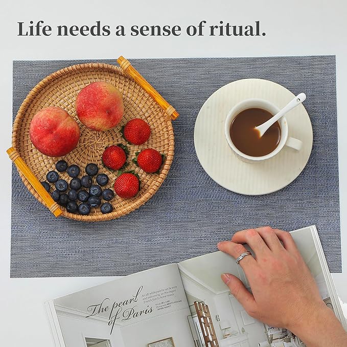 - Elegant and Practical Design: With a luxurious vinyl woven texture, precision cutting, and heat-trimmed edges, our double-sided placemats offer a sophisticated and practical solution. They provide a non-slip surface, resist fading, and are easy to clean, elevating your dining experience.