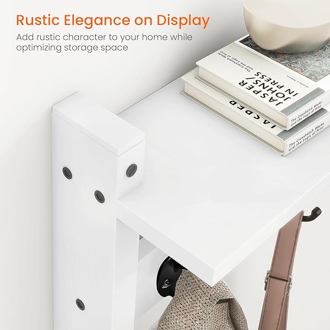 - A MORE CHANCE TO DECORATE: The 4.52" deep wall shelf provides a ample space to display pretty decorations, not only 5 metal dual hooks come in handy; Nice way to add hanging storage and organize your entry way or hallway, love to display photo frames, a potted plant or small decor on upper shelf