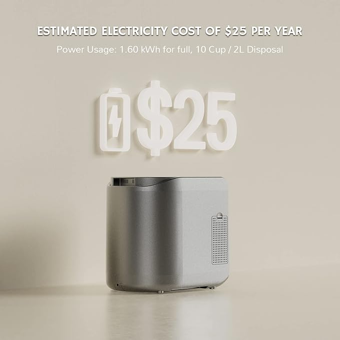 - ♻️Easy To Use and Clean: With a 2.5 liter capacity and one-button operation, you can compost several different types of waste at the same time with the simple press of a button. The bucket is made of cast aluminum, which is easy to clean and dishwasher safe.