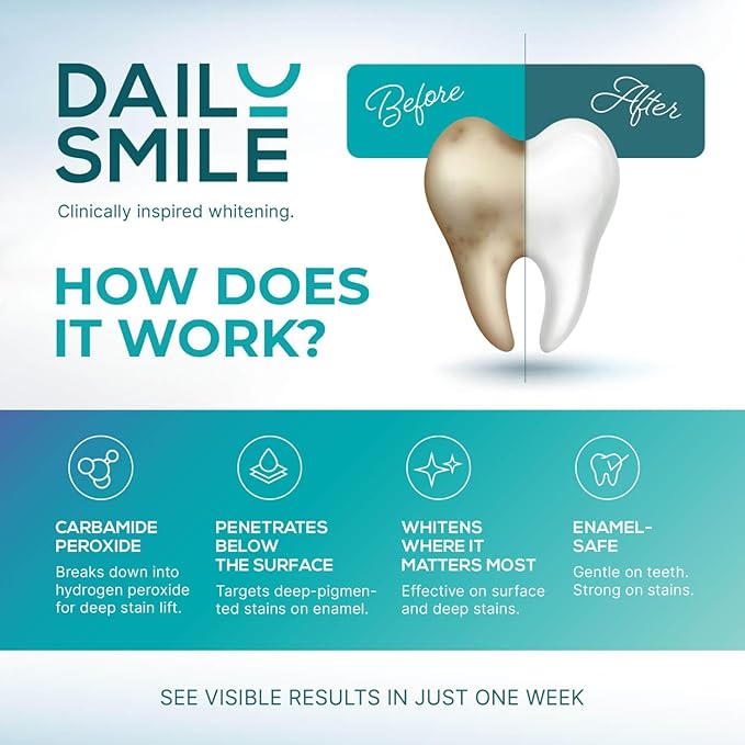 - SAFE FOR SENSITIVE TEETH: Formulated for sensitivity, Dailysmile teeth whiteners are gentle on enamel while still targeting tough stains. Enjoy a pain-free teeth whitening experience with no irritation - no compromises.