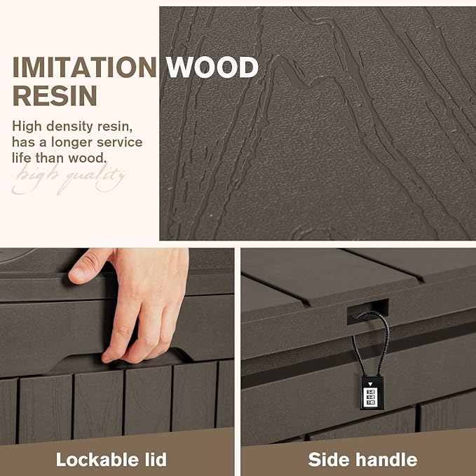 - [Resin Material] Jummico 31 Gallon Resin Deck Box choose high density resin as the material, lightweight but solid, also can effectively waterproof and UV protection. It has strong weather resistance