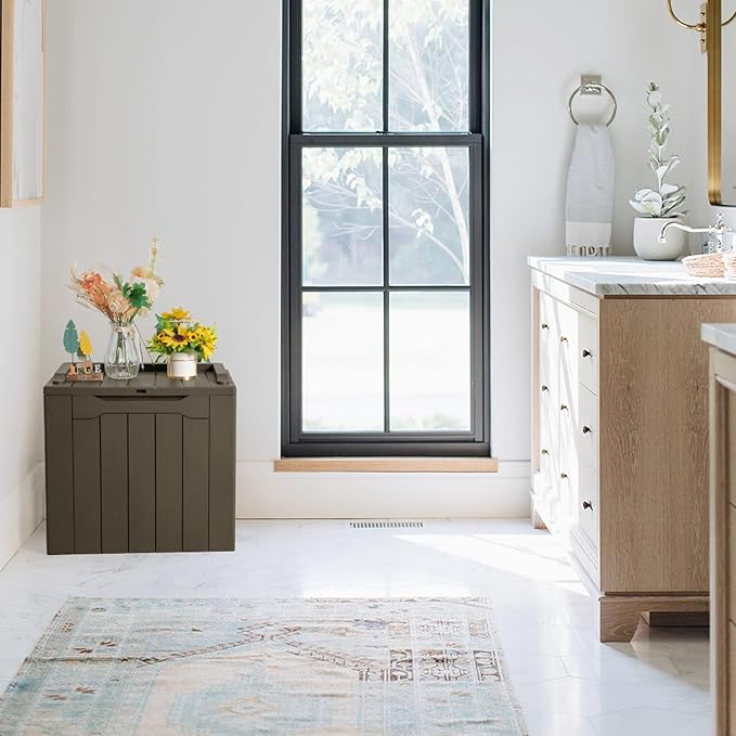 - [As Extra Seat] In addition to being used as deck storage, the lid can be used for additional indoor and outdoor seating. The maximum load capacity of the lid is 220 LBS, which can easily carry the weight of an adult.