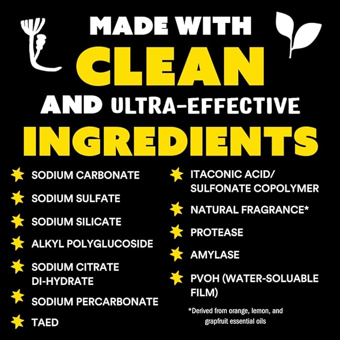- WHAT’S INCLUDED: One 120 count bag of Dishwasher Detergent Pods. Free of harsh synthetic fragrances, dyes, and other harmful chemicals such as ethoxylates.