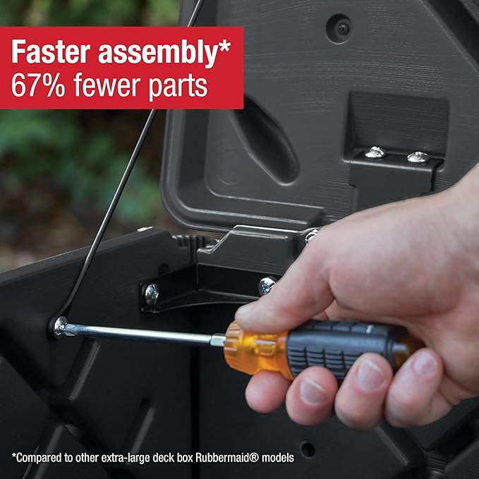 Rubbermaid Medium Resin Outdoor Storage Deck Box (74 Gal), Weather Resistant, Black, Deck Organization for Home/Backyard/Pool Chemicals/Toys/Garden Tools/Porch/Patio Cushions