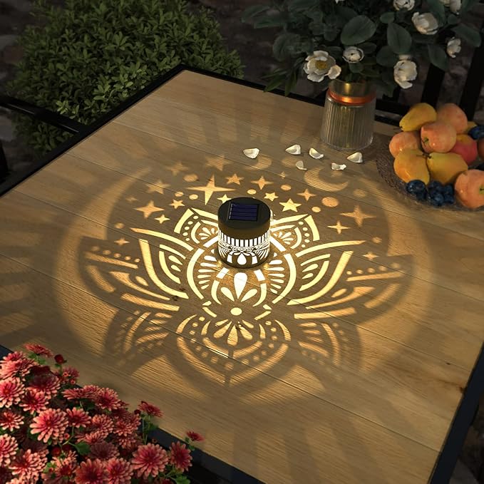 - Good Decoration: 10 lumens of warm yellow light. The small fence solar lights can project a unique and beautiful lotus pattern. In a dim environment, the solar lights can illuminate a corner of the fence or the wall and create a beautiful and warm atmosphere. They are very suitable as holiday decorations and gifts for relatives and friends