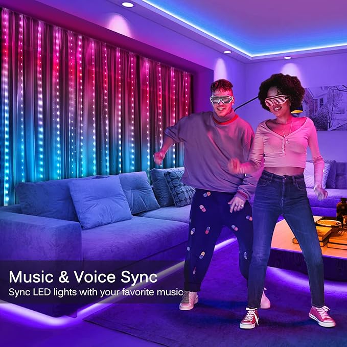 LED Curtain Lights, 9.8ft x 9.8ft 300 LED Color Changing String Fairy Lights Curtain Smart APP Control, Music & Voice Sync for Bedroom Wall Backdrop Indoor Outdoor Christmas Decorations