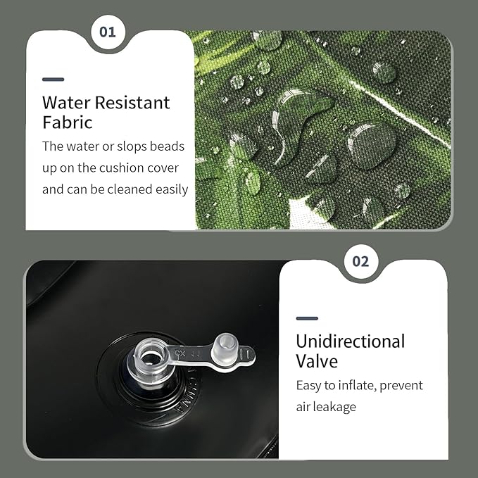 - 【EASY to INFLATE】 - Begin by placing the inflatable component into the cover prior to inflation. Utilize the foot pump to inflate it to approximately two-thirds of its size, then zip the cover halfway. Continue inflating until fully expanded and securely zip it closed. Ensure that the valve is properly sealed