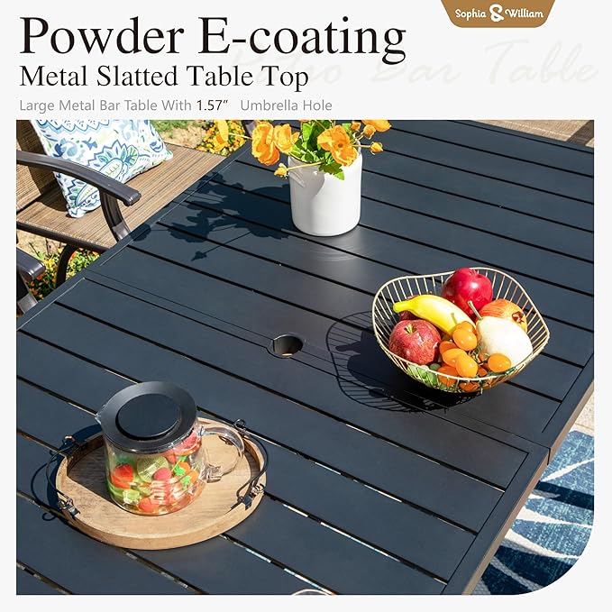 - 7 Pieces Bar set:large 66 bar table with 6 bar chairs, great for your large family enjoy daily leisure time. Sturdy x brace under the table makes it more stable. Umbrella hole design, great for sunshine day use