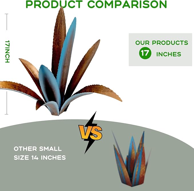 - 【Eternal metal agave】This is a rust-style metallic agave, made from metal and painted with blue high lights in contrast with its rusty steel style finish creates a very unique juxtaposition in the spring you will find a variety of beautiful and lush foliage unique to the Golden State.