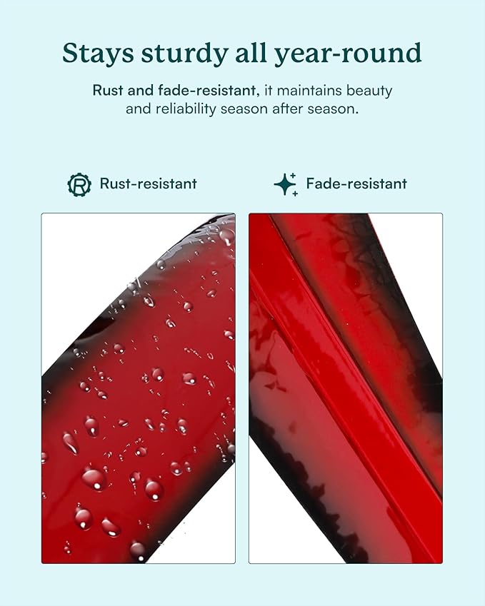 - RESISTANT OUTDOOR METAL DECOR: Made of resistant metal with protective coating finishes. UV, RUST, and FADE RESISTANT. The all-season decorative spinner can be cleaned easily to keep its reflective shine and rustic appearance. Long-lasting use