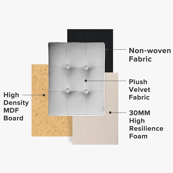 - PURE DESIGN – Our button are integrated with the lid in a seamless manner. Clean and tidy look, but most importantly, sturdy and functional. Crafted with high quality MDF board, high-density sponge make the stool more comfortable and breathable.they make for a lovely and practical gift to friends and family for birthdays, housewarmings, or any other gift-giving occasion