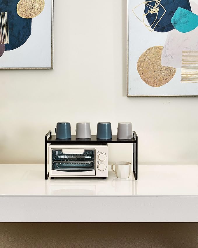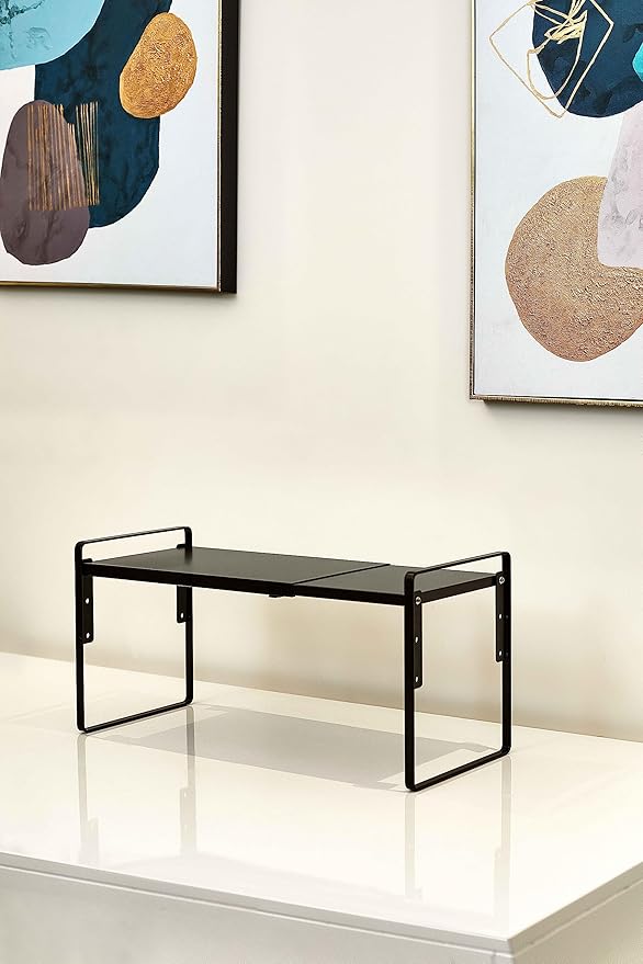 Nxconsu Cabinet Shelf Expandable Height Adjustable Organizer Riser for Kitchen Cabinet Pantry Cupboard Under Sink Countertop Organization Storage Space Saver Stackable Heavy Duty Metal Black
