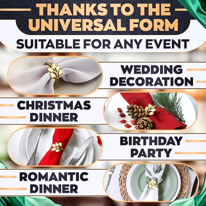 - Beautiful Fall Napkin Rings Set of 12: Our eye-catching gold napkin rings shine with an elegant finish that will surely be a conversation starter at any event, wedding, family dinners