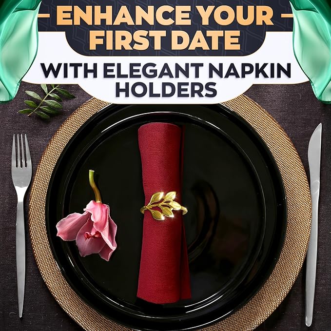 Gold Napkin Rings Set of 12 – Sturdy Metal Napkin Rings, Easy to Clean | Elegant Leaf Design for Table Settings, Holiday Table Decor, Wedding & Festive Dinners, Special Occasions, Grat for Gift Giving