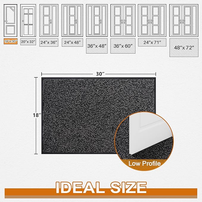 Mibao Front Door Mat, Dirt Trapper Welcome Mat for Outdoor Indoor, Non-Slip Waterproof Doormat, Durable Machine Washable Low Profile Entry Rug for Back Door Outside Patio Porch, 30" x 18", Black