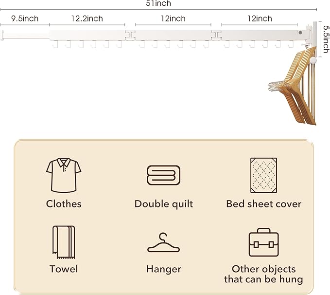 - ****【Can be folded left and right and up】****This wall-mounted drying rack can help you save space more effectively with its three-fold design. Not only can it be folded horizontally against the wall, but it can also be folded vertically upwards. This feature is particularly useful when you have limited horizontal space and need to utilize the vertical space for drying clothes. This drying rack's ability to hang clothes in different directions showcases its advantage over traditional hangers.