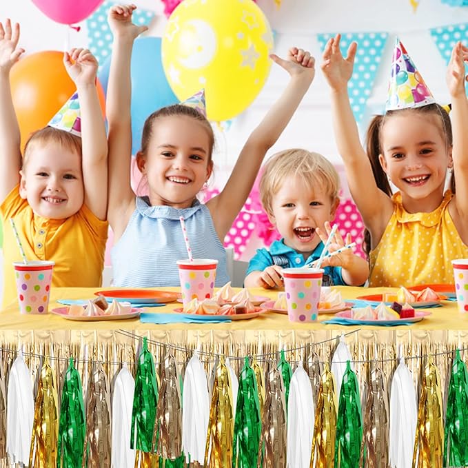 - 【Reusable Tassel Garland Material】: high-quality metallic foil tassel garlands, with the virtue of nice craftsmanship and lightweight, they are reusable and safe, and not easy to fade; They come with white ribbon for hanging, and garland tassels hang perpendicular to the string, and are adjustable to provide you with the option of spreading the tassels out or piecing them closer together.