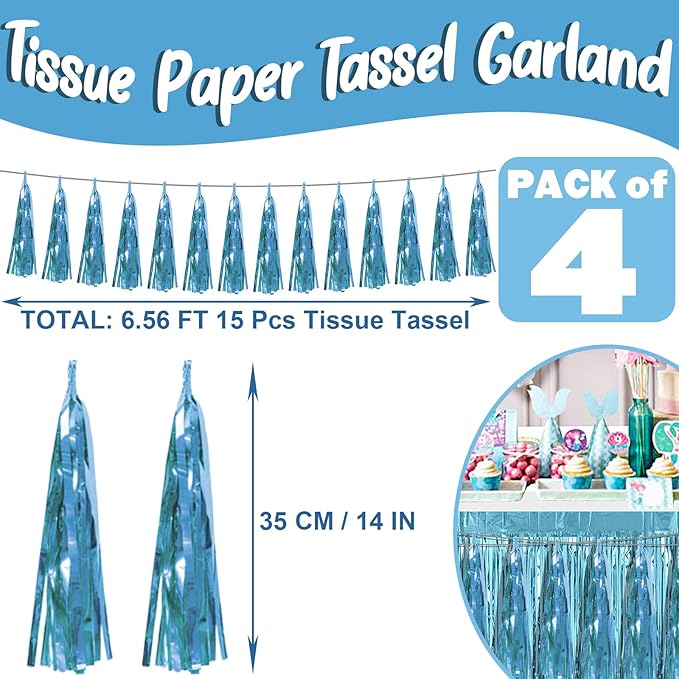- 【Perfect Party Decoration】The light blue tinsel garlands are designed in a metallic Fringe, bright, and beautiful, at the same time, they shine in the sun, and these gorgeous tassel garlands create a wonderful backdrop or centerpiece for your party space. and bring you, your family, and your friend's good Visual effects. your party many emotional and touching moments where a lot of pictures will be taken and everybody will have a wonderful time together.