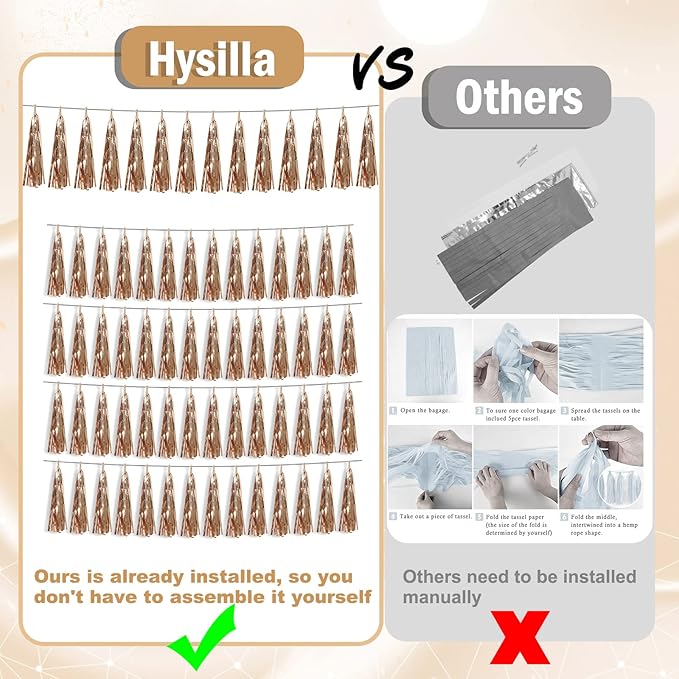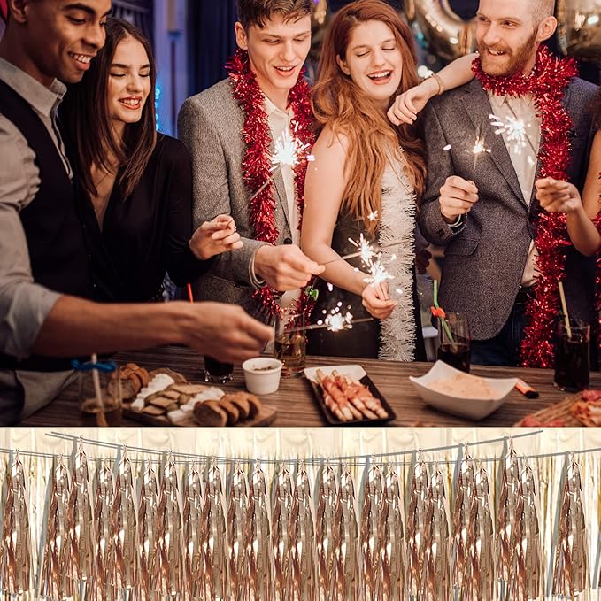 - 【Perfect Party Decoration】The champagne tinsel garlands are designed in a metallic Fringe, bright, and beautiful, at the same time, they shine in the sun, and these gorgeous tassel garlands create a wonderful backdrop or centerpiece for your party space. and bring you, your family, and your friend's good Visual effects. your party many emotional and touching moments where a lot of pictures will be taken and everybody will have a wonderful time together.