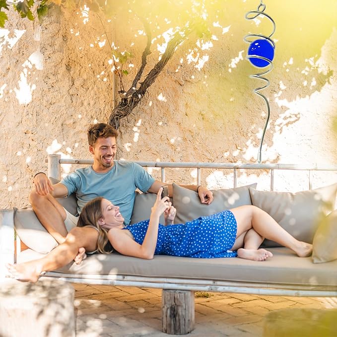 - 【Unique Spiral Design】The gazing ball spiral tail is an unique hanging ornament ,Also it can help to stabilize 3D wind spinners or yard decor from swing when it rotate.When the spiral tail rotates to the left, the glass ball seems to move upwards,when the spiral tail rotates to the right, the glass ball seems to moves downward,the glass ball seems to like floating and dancing in air, presenting a magical optical illusion!