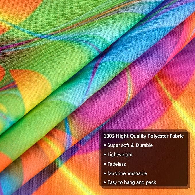 - Multi-purposes: The blacklight tapestry can be used both indoor and outdoor as wall decor posters, party backdrop, ect. It’s also great for wall hanging, sofa cover, bedspread, table cloth, picnic blanket, fashion shawls, beach towels, ceilings, yoga mats and so on.