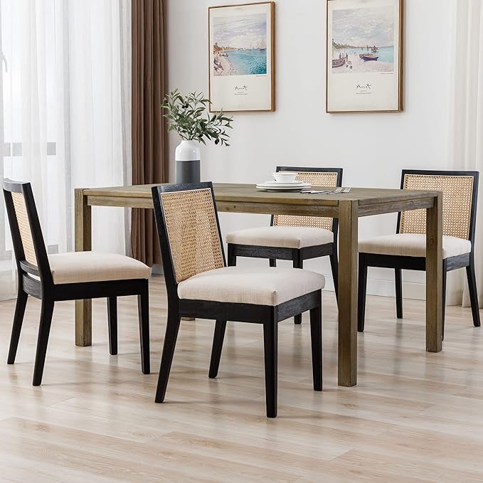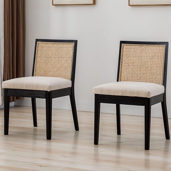 - MODERN DESIGN These modern dining chairs feature a padded cushioned seat, a square rattan back, and black wood legs. Simple but elegant, they will be a great addition to your home