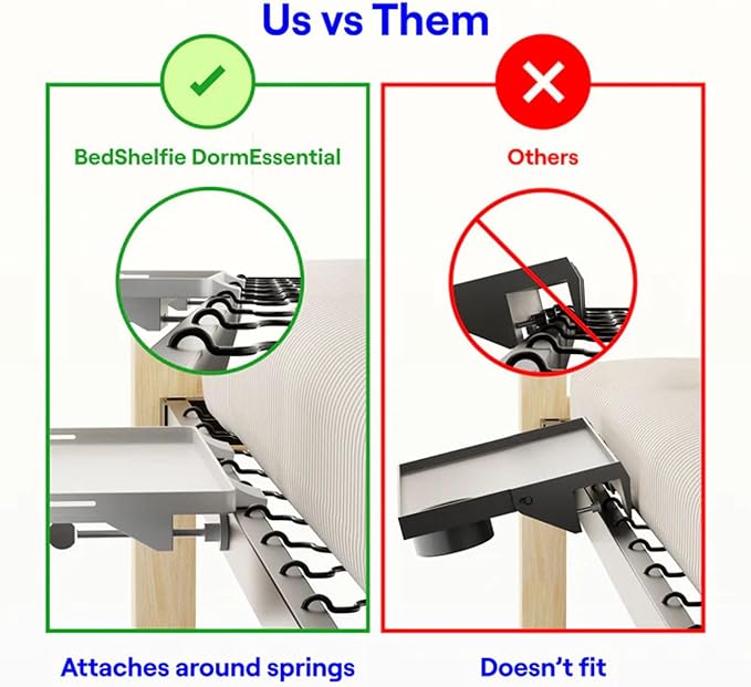 - HASSLE-FREE, TOOL-FREE INSTALLATION: Say goodbye to complicated setups! The BedShelfie Bed Shelf Table is designed for effortless installation, so you can start using it immediately. No tools or confusing instructions needed—simply slide and attach the versatile tray to the side of your bed, bunk bed, or even couch. Enjoy an instant upgrade to your space with zero hassle!