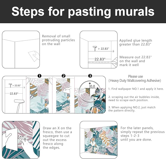 - 💕Wallpaper installation can refer to our main picture, the package will also be placed inside the installation instructions.