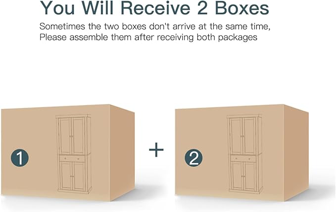 - The pantry cabinet is shipped in 2 packages.If you receive only one package, please wait 1-2 days for the second package to arrive.