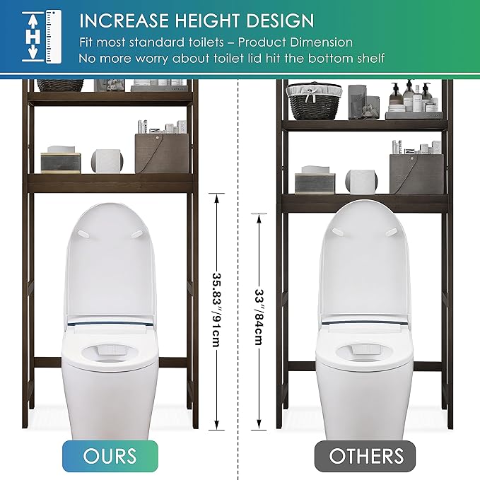 - EASY TO ASSEMBLY & STURDY: With included illustration and tools, only follow the instructions and tighten the screws will set it up; All solid bamboo parts are fastened by galvanized screws, making this toilet rack super stable and wobble-free. In addition, included tip-over restraints kit can make your bathroom accessories and rack safer