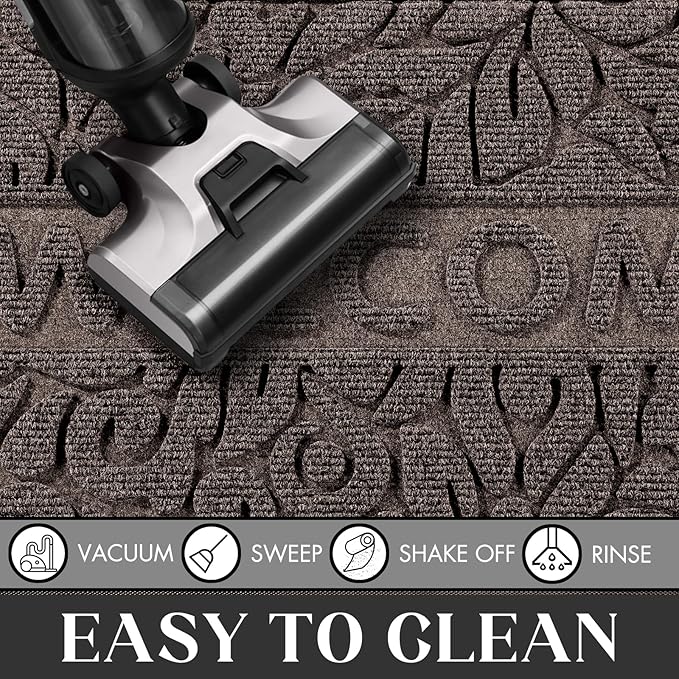 • 【Easy to Clean】: Yimobra welcome mat outdoor entrance, Just use a vacuum cleaner, or sweep with a broom, or tap the backing and shake the doormat. For more in-depth cleaning, use a garden hose to rinse the floor mat, then hang it in a ventilated place to air dry it