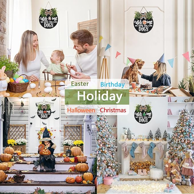 - EXQUISITE GIFT: The interchangeable front door welcome sign is a unique gift that matches other modern farmhouses and rural themed decorations. Each front door wreath hanging decoration that welcomes dogs is a great idea and can be used as a housewarming gift, birthday gift, or Christmas gift, especially for dog lovers and dog families.